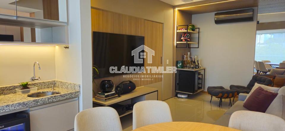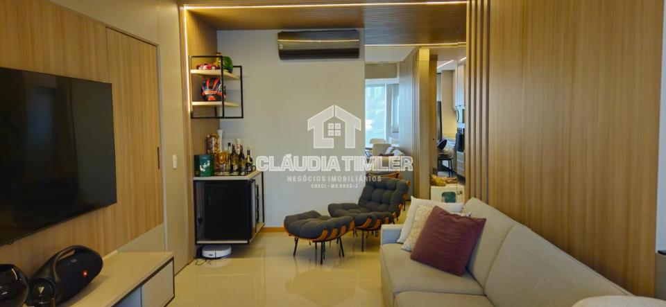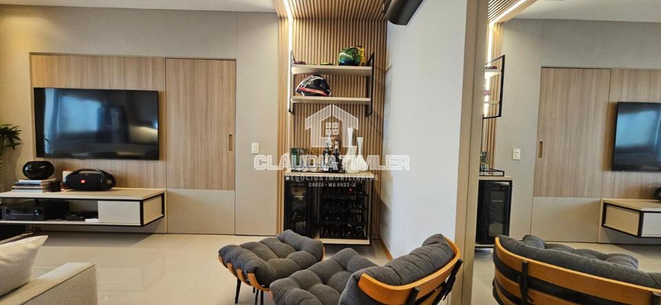 Sala dois ambientes, integrada com sacada gourmet com