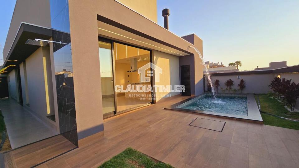Piscina com aquecedor e hidromassagem. Três suítes, sol nascente, living com sala de tv/estar  e jantar bem espaçoso, pé direito duplo, área gourmet , lavanderia, lavado, wc da piscina, casa com sistema de energia fotovoltaico instalada, automação na área gourmet e living com controle por Alexa de ar condicionado, luzes e sistema de som prontos. Janelas blackout com esquadrias de alumínio automatizadas, trabalho lindo em gesso.
