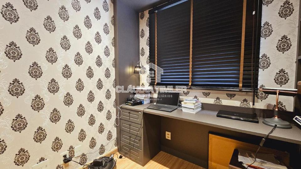 Apartamento possui sala para 2 ambientes, 3 dormitórios sendo 1 suíte e 1 dos quartos montado para escritório, rico em planejados, 1 banheiro social, sacada com churrasqueira e 2 vagas de garagem.