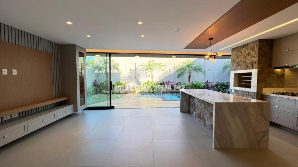 Piso térreo com lavabo. Suíte. Sala de TV com pé direito duplo. Cozinha planejada individualizada. Lavanderia espaçosa. Banheiro de serviço.