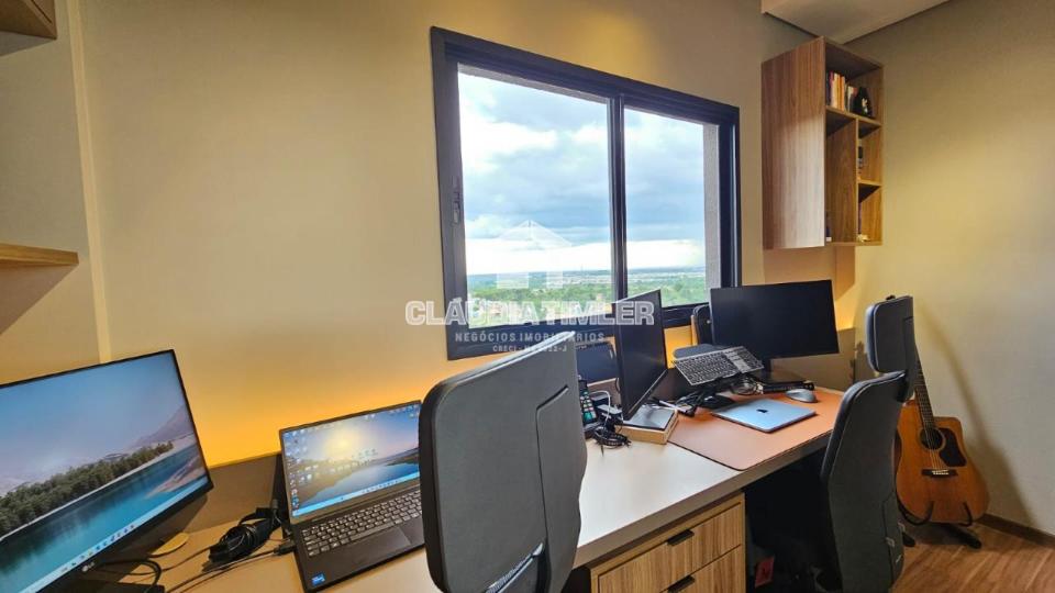 Apartamento mobiliado no residencial Aquarela, torre 4, completa de planejados e todo mobiliado, 01 suíte com ar condicionado e repleta de armários, 01 escritório, 01 quarto, sala de estar e cozinha com eletrodomésticos.