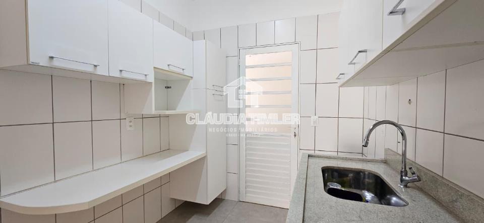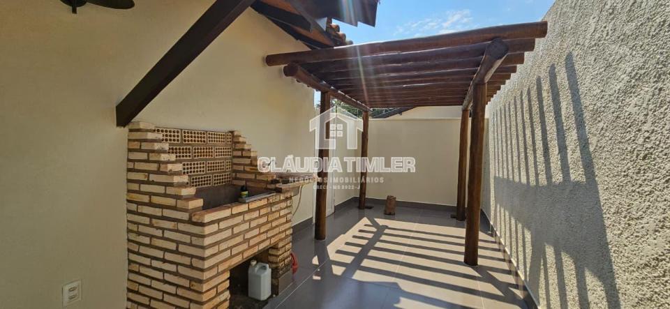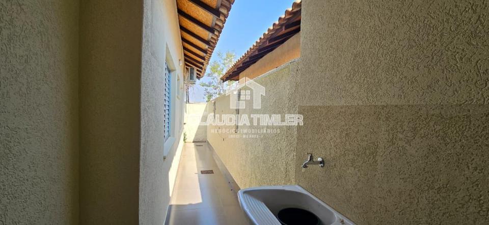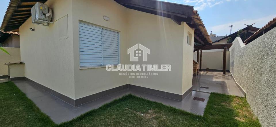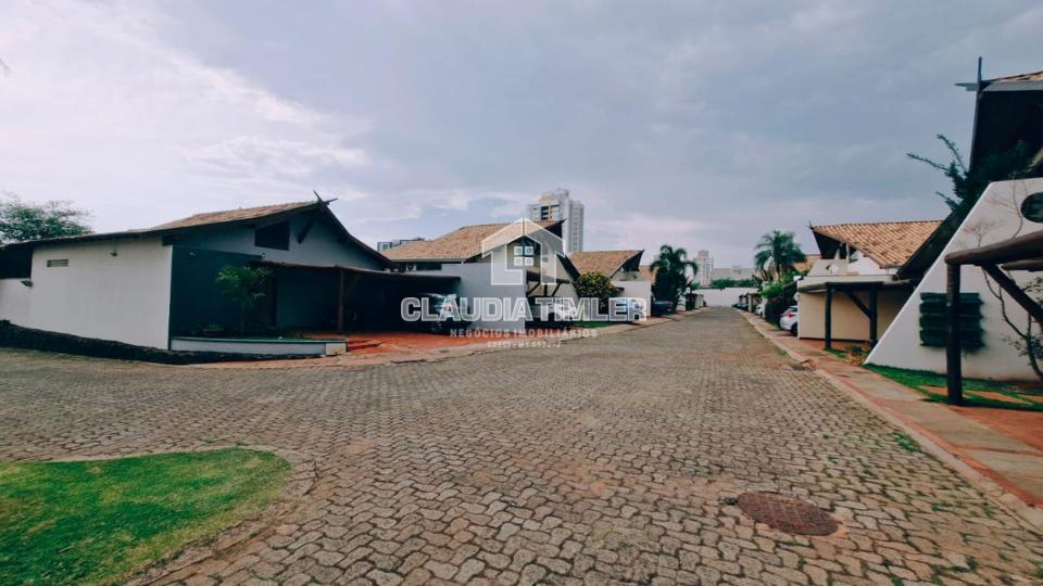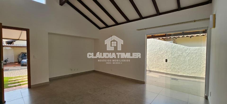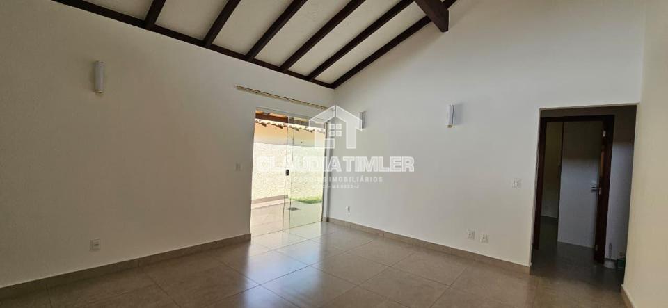 Casa térrea em condomínio fechado com sala ampla, cozinha com planejados, banheiro social, 01 suíte com armários e ar condicionado, 01 quarto com armários e ar condicionado, 01 quarto sem armário, área de serviço e espaço de quintal nos fundos.