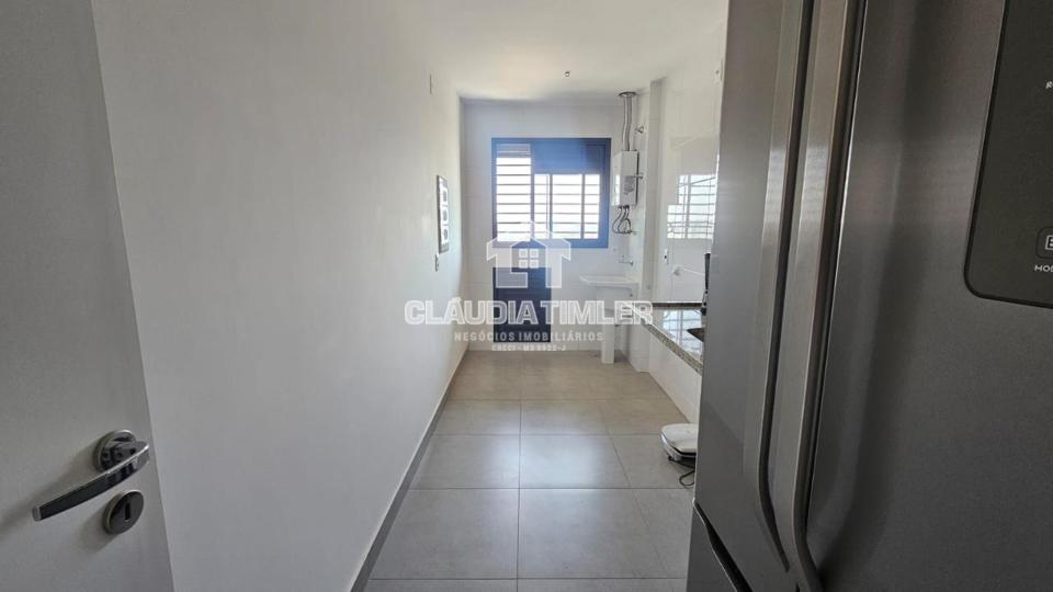 Cozinha fechada com aquecedor a gás Rinnai, geladeira Electrolux Frost Free inverter