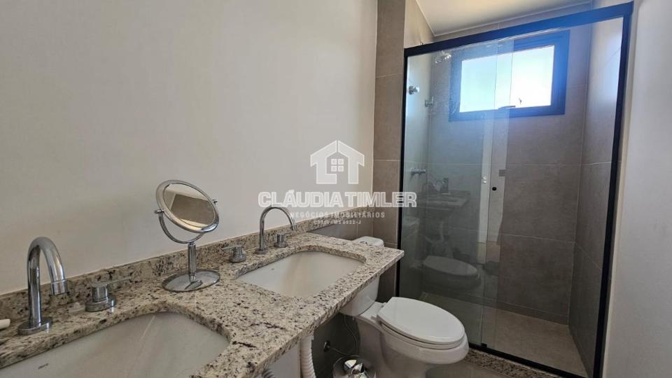 1 suíte ampla com cama box Simmons, ar condicionado Fujitsu. Espaço para um amplo armário. Banheiro com cuba dupla e box em blindex