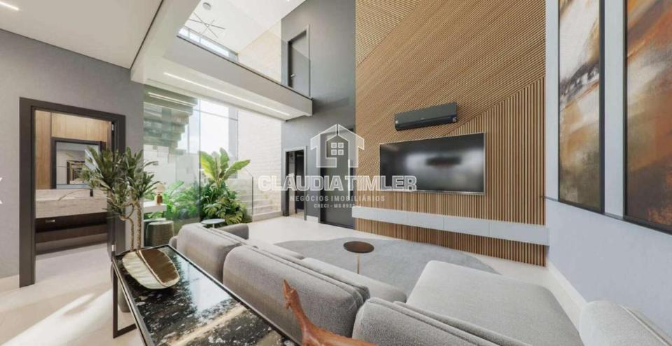Sobrado com distribuição de ambientes bem planejado contendo no piso inferior uma área social com living e sala de jantar, uma suíte versátil completa que pode ser adaptada para quarto de hóspedes, escritório ou sala de TV. Contém ainda: cozinha fechada, depósito, lavanderia, espaço gourmet com possibilidade de integração com o living e área de lazer com piscina. No piso superior temos 3 suítes e um grande diferencial que é um espaço que poderá ser usado como copa ou roupeiro para facilitar no dia a dia já que apresenta ponto de água e energia. Água aquecida em todos os ambientes, aquecimento solar na piscina, irrigação automatizada nos jardins, fechadura eletrônica, portas com vedação acústica, automação residencial. Infraestrutura para: ar condicionado, placas fotovoltaicas, recarga de carro elétrico, cortina automatizada. Espaço reservado para instalação de plataforma elevatória. Agende já sua visita! Corretora responsável Guadalupe Costa CRECI/MS 14975. Contato: (67) 99954-4300.